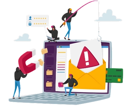 É uma prática criminosa comum e efetiva, realizada por meio de e-mails, mensagens de texto, ligações ou sites e pop-ups falsos, contendo algum tipo de isca atrativa.